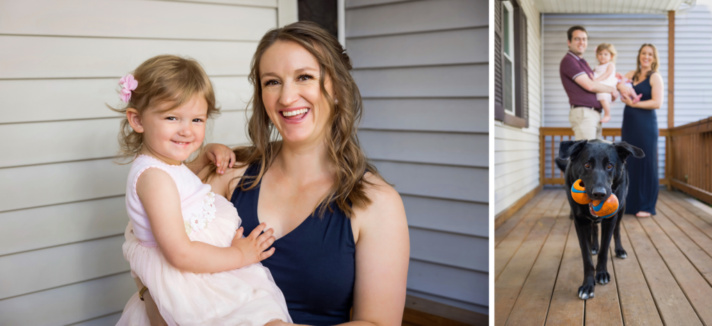 I always love all the images, but a few of my favorites are: Ollie on the porch with us all, Darcy and Harper together on the bed, Harper laying on the bed (almost all of them!). The photo of Ollie really captures his essence as a dog, and it was great to be able to get a family portrait with a dog as anxious/high energy as him. For this shoot, I know I really wanted images that would capture the love between siblings and you got the sweetest moments between the girls. All of Harper’s individual shots are great and highlight her budding personality.