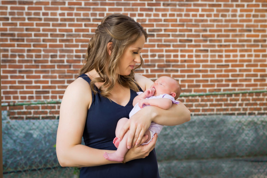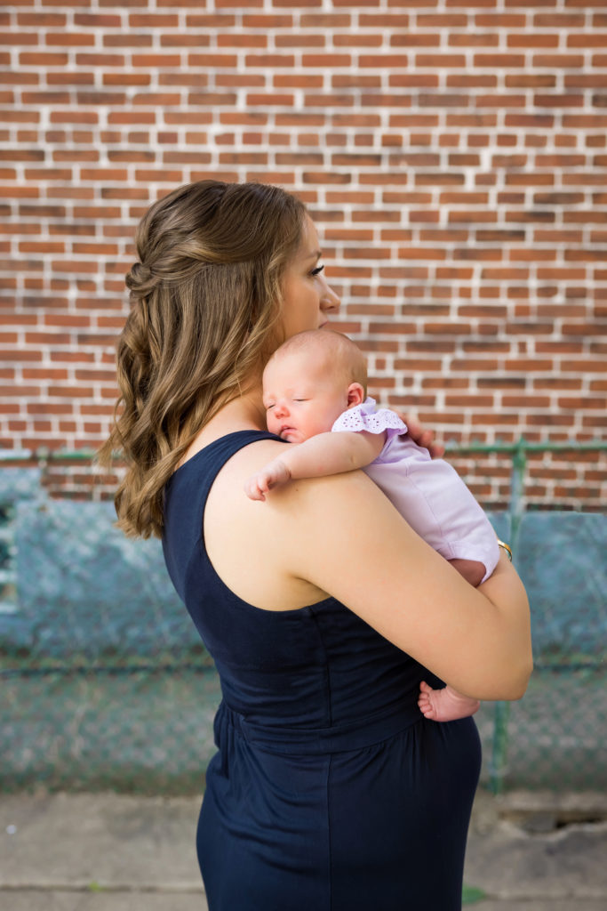 For the family photos – I knew that I wanted to feel comfortable post-partum so we kind of built the whole look off of what outfit I knew I could fit into post-partum and be comfortable in. Since we didn’t find out the gender in advance, I had a few ideas in mind of what colors I wanted Harper to wear, and ordered the outfit when she was born. I would highly suggest that new moms plan to wear something that they are comfortable in and that they would be able to wear 2 – 3 weeks postpartum.